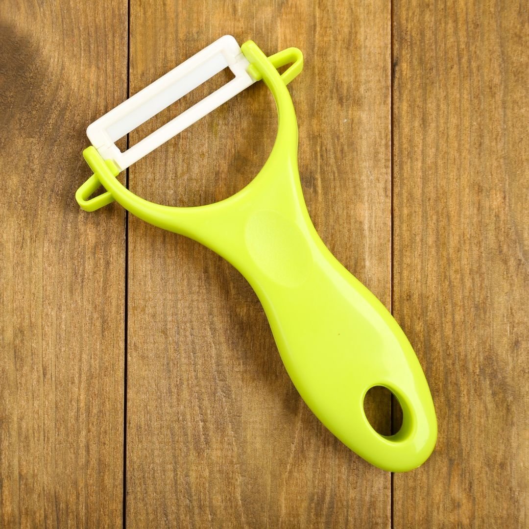 - Swiveling twin blades with flexible action easily peel potatoes, apples and other tough skinned fruits and vegetables
