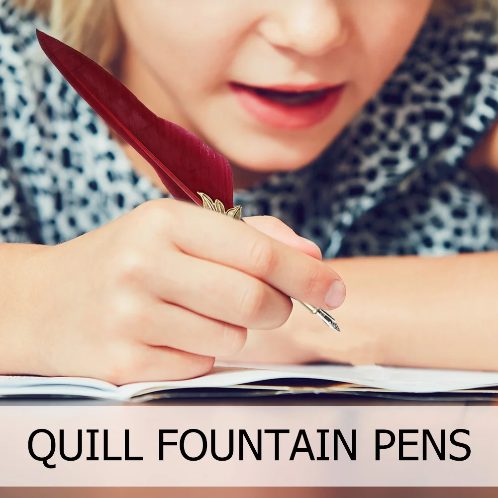 Retro Vintage Calligraphy Feather Dip Pen Writing Set Quill Fountain Pens Birthday Gifts